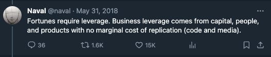Tôi tạm dịch như sau: “Vận may cần đòn bẩy. Trong kinh doanh, đòn bẩy là vốn, con người và những sản phẩm không tốn thêm chi phí khi sao chép (code và media)”. Là một software engineer, dĩ nhiên tôi phải code rất nhiều. Nhưng media thì không, vì bản chất ngành nghề không đòi hỏi kĩ năng đó.