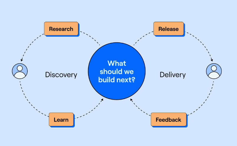 Sau quá trình làm việc với các stakeholder, em cần tìm ra được những key findings; Rồi làm việc với các Product Manager, để trình bày những key findings đó. Sau đó, bên team product sẽ làm product mới hoặc sửa product hiện có để làm sao đáp ứng được những gì em đã thu thập được quá trình research.